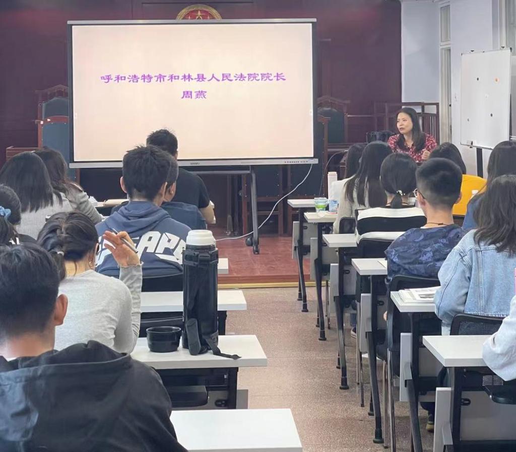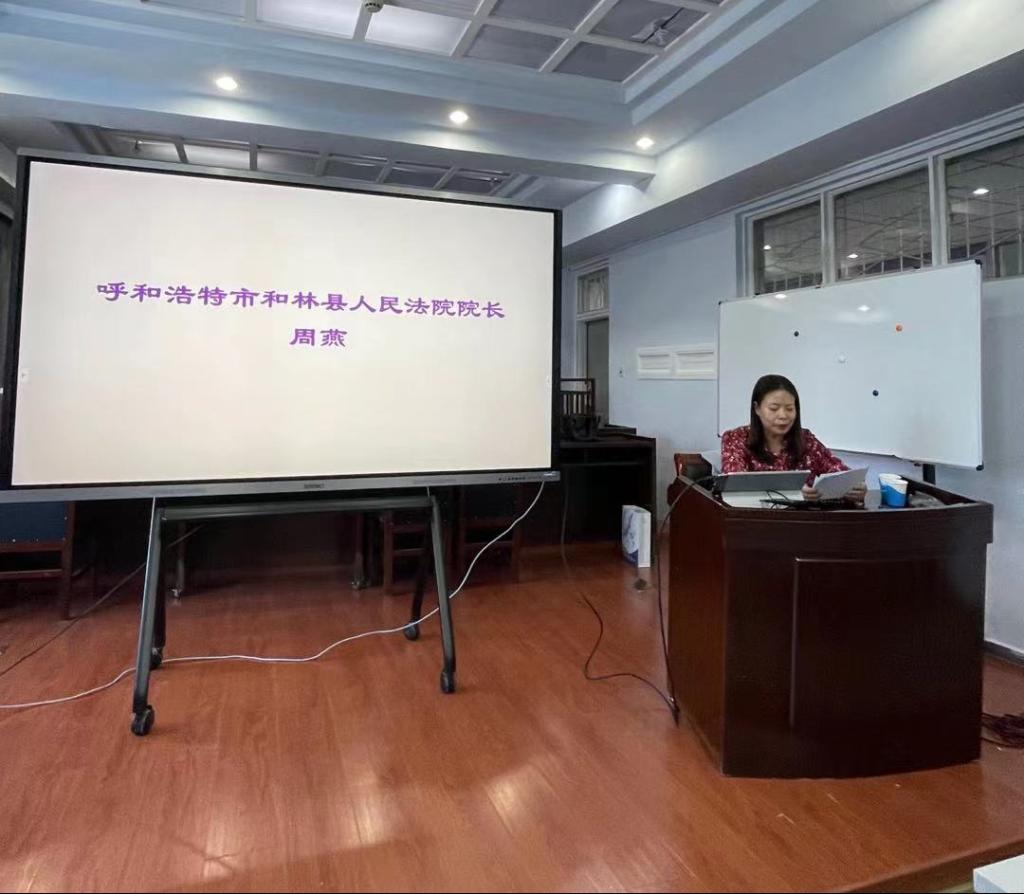 2021年9月24日下午,yl6809永利官网集团2021年“人文讲坛”第七讲开讲,yl6809永利官网集团特聘实务导师、呼和浩特市和林格尔县法院院长周燕做题为《行政审判的理论与实践》专题讲座,yl6809永利官网集团部分教师以及全体2021级法律硕士在场聆听。周燕院长原任内蒙古自治区呼和浩特市中级人民法院行政庭庭长、执行局局长,三级高级法官,现任呼和浩特市和林格尔县法院院长;多年从事行政审判工作,理论水平高,业务能力精湛,被评为全国优秀法官、全国优秀行政审判法官、呼和浩特市劳动模范。