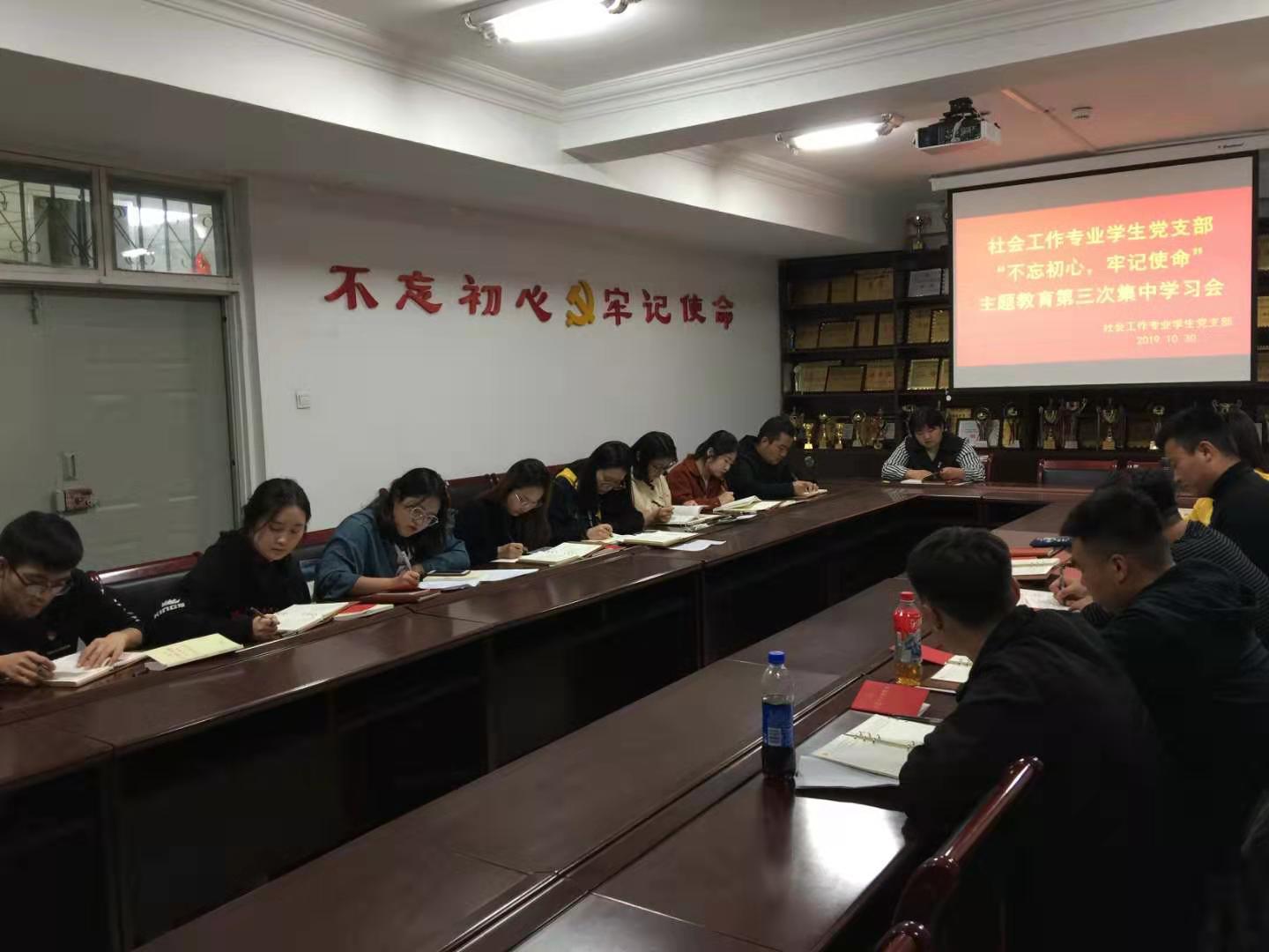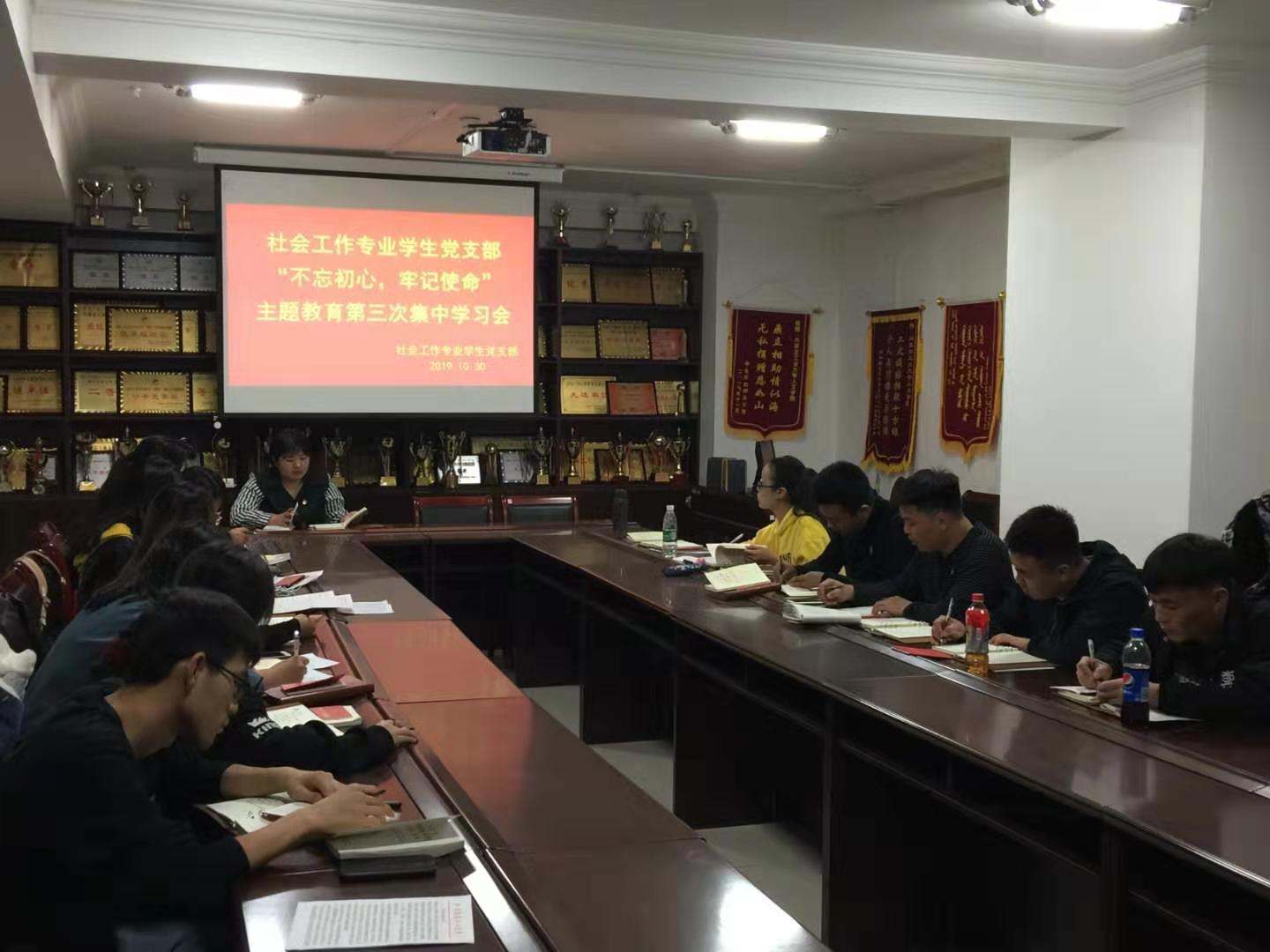 社会工作专业学生党支部开展“不忘初心、牢记使命”主题教育第三次集中学习会
