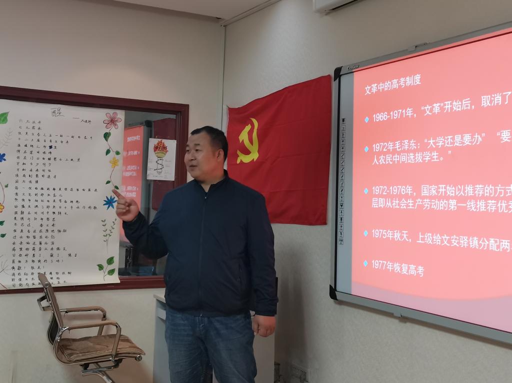 1022日,yl6809永利官网集团党总支开展“不忘初心、牢记使命”主题教育专题党课第二讲,副书记、副院长白南定主讲,分管部门和全体学生党员参加。