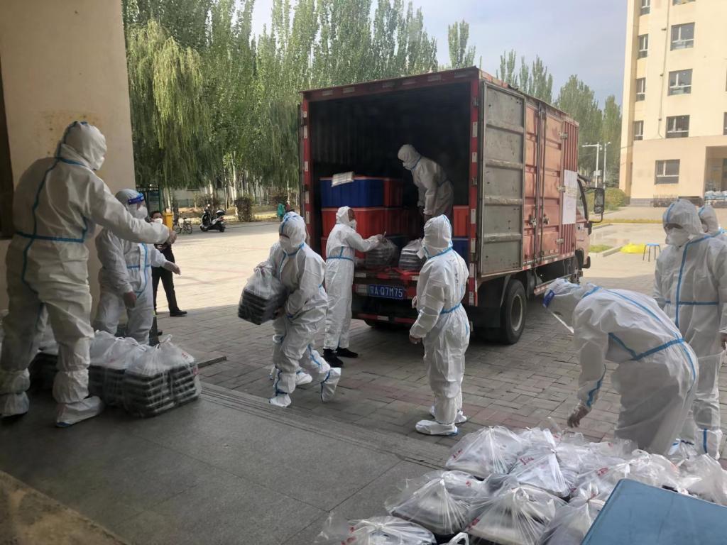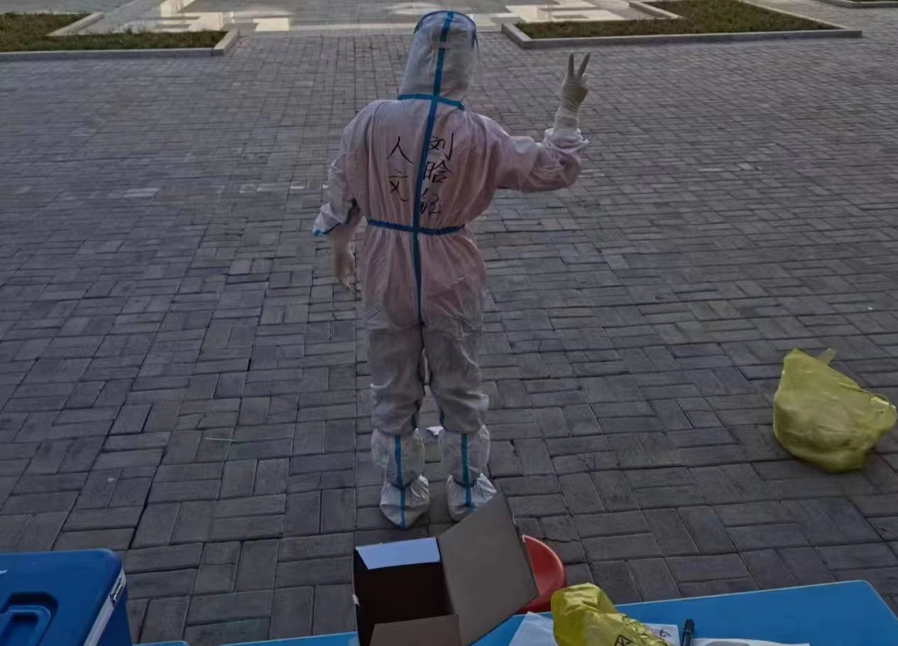 自本轮疫情发生以来,人文学院党委第一时间谋划研判,迅速启动指挥有序、执行有效、监督有力的综合防控措施。学院党委书记马利强,院长、副书记郝晓燕,副院长、副书记武新春带领学工和班主任教师党员在第一时间进驻校园为学生服务。从带着口罩每天清晨5点的核酸检测、晚上宿舍的值守值班,到身着全身防护服清晨到夜半从1楼到6楼的一次次送餐和送水,不分昼夜连续工作的17天里的每一滴汗水都在实实在在地书写着“疫情就是命令,防控就是责任”的共产党员的使命担当。伴随第二批人员的进校审批通过,学院领导班子5人全体会师在抗“疫”最前方。这样的精神感召下,学院青年教师党员踊跃报名、冲锋在前,分批次的投入到一线的防疫工作中。最新入校的教师党员们在副院长连雪君、张莉蔚的带领下,主动承担高风险楼层和工作量最重的楼层的检测任务,经常性的身着防护服不吃不喝的连续工作8小时以上。