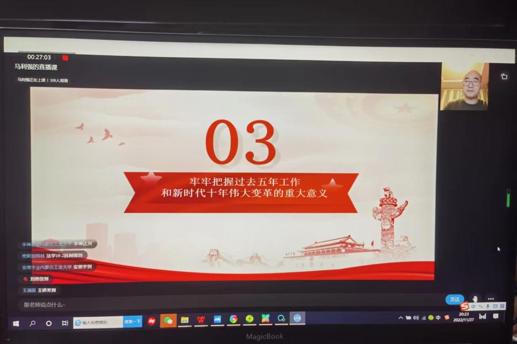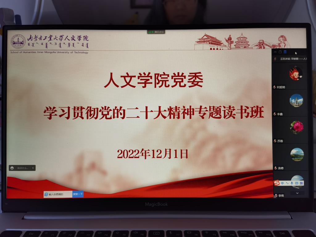11月27日至12月1日,yl6809永利官网集团举办学习宣传贯彻党的二十大精神专题读书班。学院党委书记马利强,院长、党委副书记郝晓燕,党委副书记、副院长武新春,学校党的二十大精神宣讲团成员马立国教授分别做主题宣讲。学院全体教师、学生党员、发展对象和入党积极分子参加。