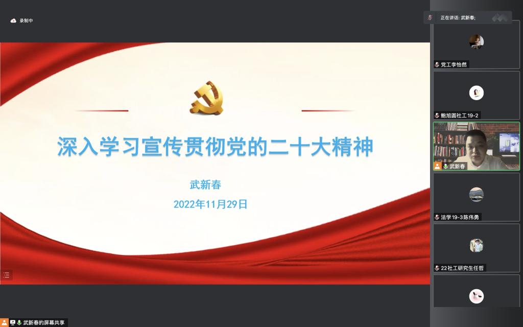 在专题宣讲中,马利强、郝晓艳、武新春、马立国分别从不同侧重点对党的二十大的重大意义、党的二十大报告中的详细内容、党的二十大对教育、科技和青年工作的重要论述以及如何从现实出发勇毅前行、履职尽责以推动党的二十大精神在学院落地生根等方面对党的二十大精神做了深入宣讲。