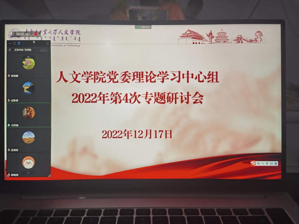 12月17日,yl6809永利官网集团党委理论学习中心组通过腾讯会议举行2022年第4次专题研讨,研讨主题为“落实党的二十大创新是第一动力,推动学院创新创业教育快速发展”,学院党委委员参加,院党委书记马利强主持。