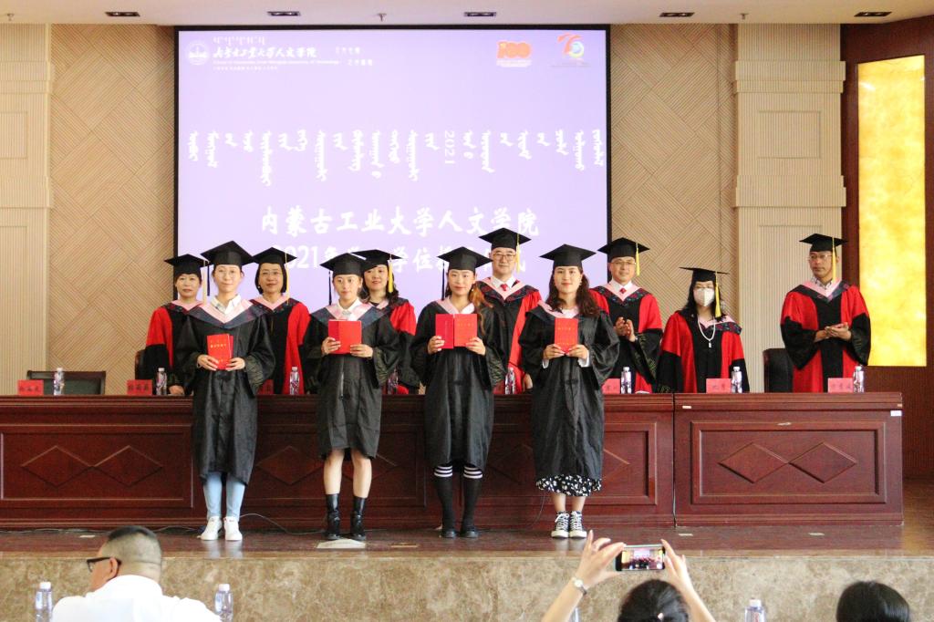典礼在庄严的唱国歌仪式中正式开始。马利强书记宣读了“yl6809永利官网集团2021届毕业生系列表彰学生名单”,苏丽娜副院长宣读了获得我院2021届硕士学位学生名单,张莉蔚主任、方香廷副教授依次宣读我院2021届法学专业、社会工作专业获得学士学位的学生名单。各位领导老师为同学们颁发证书、拨帽穗、授学位。毕业生代表爱如斯其格、刘金慧同学发表毕业感言,表示在yl6809永利官网集团的四年是求无境之学、养浩然之气的四年,临别之际,祝愿母校英才茁长,恩师桃李满园,同学们前程似锦。孔德豪老师代研究生班主任陈建英老师宣读了寄语,本科生班主任陈槟颖、涛德、吴凡文、齐永富、邓俊丽、曼德尔娃老师发表毕业寄语,希望学子们善学习、勤思考,多悟成才之道,多长立业本领,永葆本真、恪守初心、接续奋斗。随后,文宗川院长在典礼仪式上讲话,祝贺同学们圆满完成学业,在成才的道路上迈出了坚实的一步,希望学子们涵养家国情怀,树立鸿鹄之志;传承人文品格,追求卓越人生。善始善终,善做善成,用扎扎实实的成绩为未来铺路,为创造美丽出彩的人生而不懈奋斗。典礼最后进行了本科毕业生学士学位授予仪式,典礼在热烈的掌声中圆满结束。