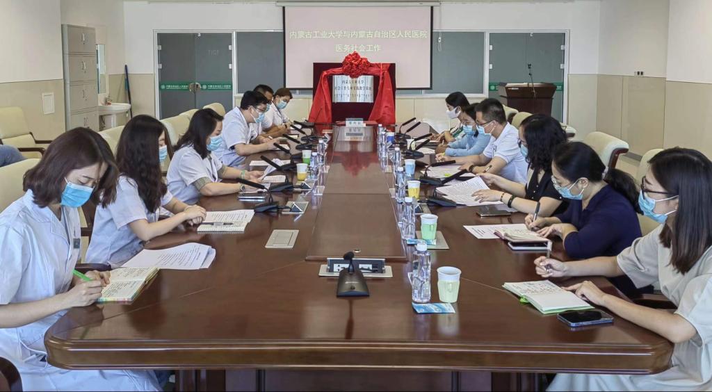 2022年7月18日,我院与内蒙古自治区人民医院实践教学基地签约揭牌仪式在医院门诊楼10楼会议室举行。内蒙古自治区人民医院党委委员、副院长袁军教授、医联体办公室/医务社工部陆俪平主任、医务社工部工作人员以及我院文宗川教授、苏丽娜副教授、邓俊丽副教授、利爱娟副教授、廉婷婷博士等出席。