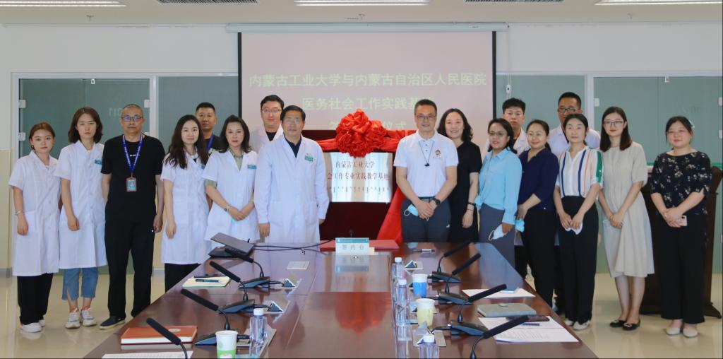 仪式上,袁军介绍了内蒙古自治区人民医院总体情况,并就共同培养医务社工专业人才、构建和谐医患关系、改善就医体验、推动区内医务社会工作发展等方面提出诸多期待。文宗川结合我区当前对服务业发展的要求和专业技术服务人员的需求等,倡导双方在教学、科研、实习实践、案例共享中心平台建设等诸多方面开展合作,提升人才培养质量。袁军与文宗川代表双方签订实践教学基地合作协议。