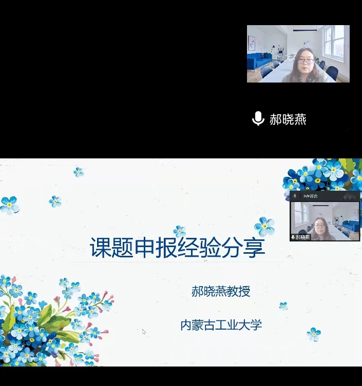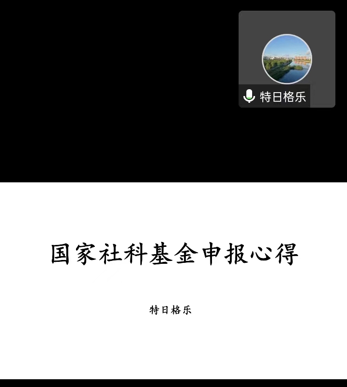为了提高学院教师申报国家级、自治区级科研项目的能力,提前谋划学院科研项目申报工作。9月29日下午,学院举办科研项目申报经验交流线上分享会,邀请特日格乐博士、利爱娟博士及郝晓燕院长对国家、自治区社会科学、自然科学项目的申报进行分享交流。分享会由学院副院长连雪君主持,学院全体教师参与。