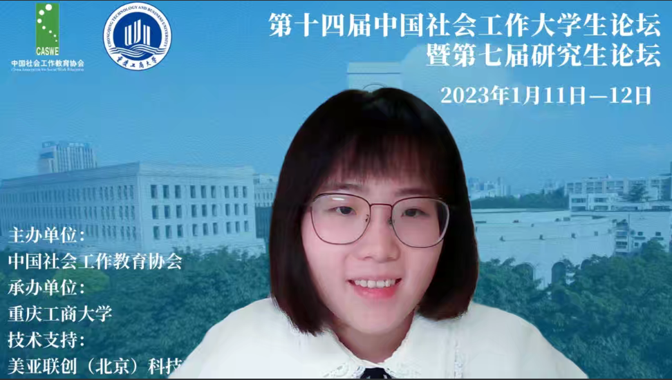 2023年1月11-12日,由中国社会工作教育协会主办、重庆工商大学承办的第十四届中国社会工作大学生论坛暨第七届研究生论坛在线上举行。来自全国90余所高校的300余名社会工作专业本专科生、研究生参加论坛。我校学生的12篇学术论文入选,共获得6个奖项。