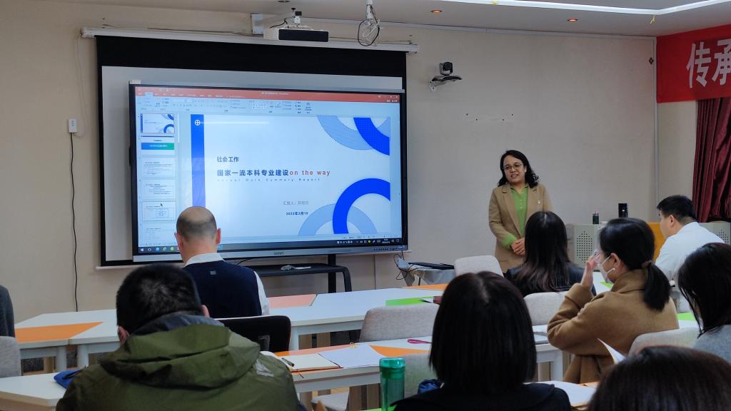 20233月16日下午,“专业建设大家说”系列讲座第一讲在社工实验室如约举行。社会工作系主任、专业负责人邓俊丽副教授以“社会工作:国一本建设在路上”为题进行了讲解。全院教师参加,副院长张莉蔚主持。