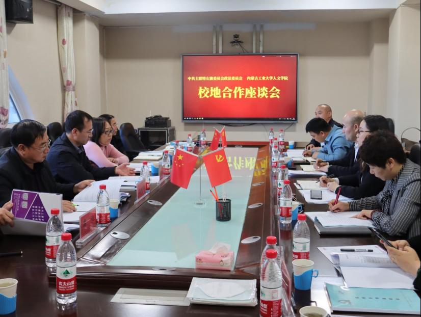 吕文平介绍了政法系统工作情况,并从政法系统实习岗位、社区综合治理、研究生联合培养基地建设、创新党日活动模式和支部共建等方面提出合作意向。土左旗汇金道司法所所长杨永祥介绍了《土默特左旗关于引入高校资源推进基层法治建设工作方案》,双方就合作意向相关内容和细节进行了深入的探讨和交流。