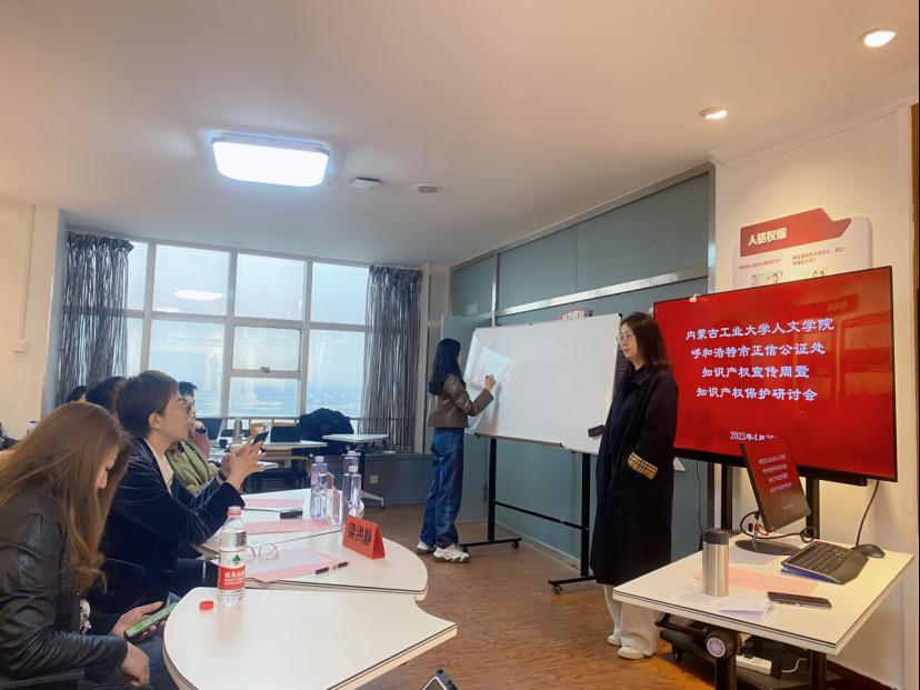 2023年4月20日,yl6809永利官网集团连雪君副院长、吴凡文副教授与呼和浩特市正信公证处孙宏霞副主任、北京志霖恒远知识产权代理事务所内蒙古分所梁洪静经理等在yl6809永利官网集团法律硕士培养中心举行知识产权保护研讨会。孙宏霞副主任、梁洪静经理等走进课堂与师生就知识产权保护进行深入交流。