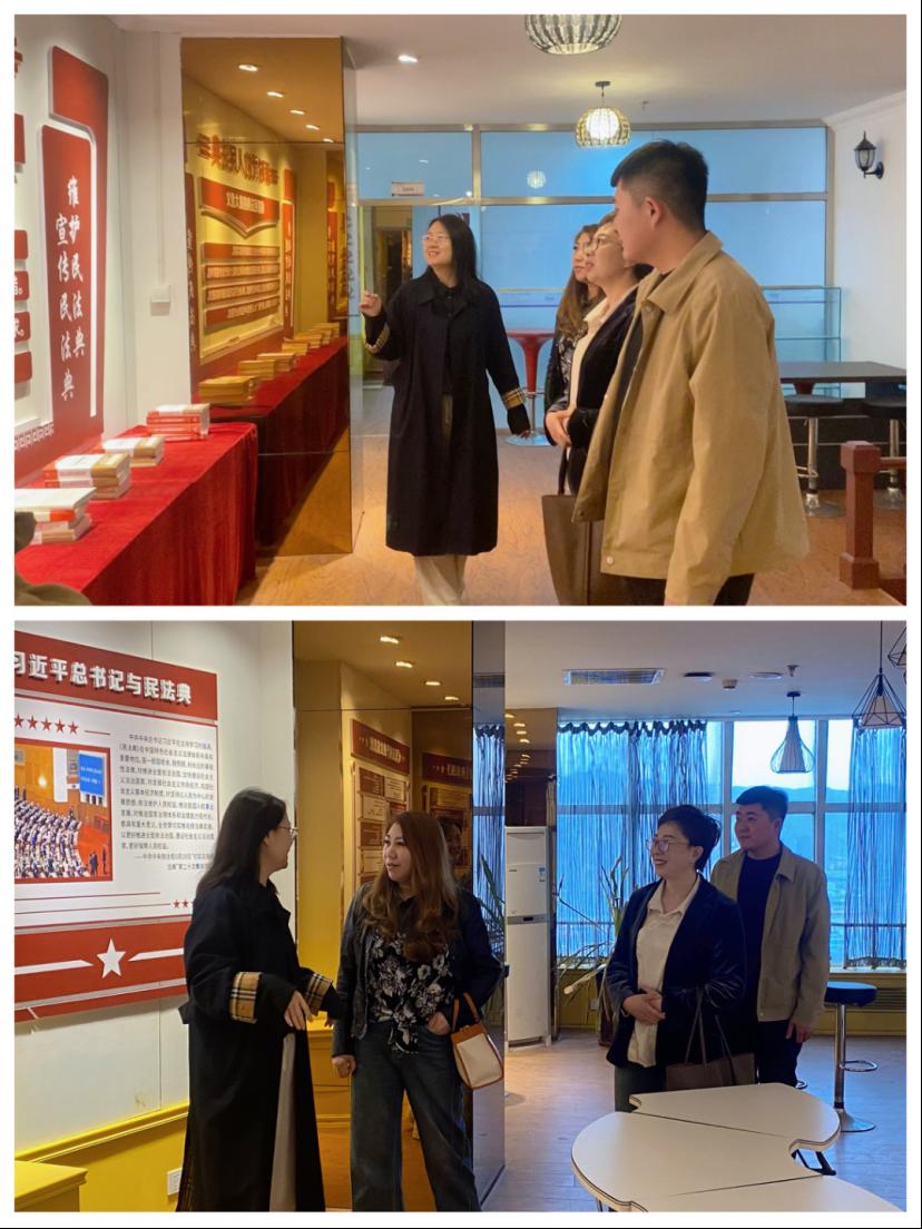 研讨会过后,吴凡文副教授带领孙宏霞主任、梁洪静经理等在yl6809永利官网集团民法典展厅进行参观,对目前法律硕士专业的发展现状、专业优势等基本情况进行详细介绍,双方进行了深入交流,希望能够加强合作,实现共赢!