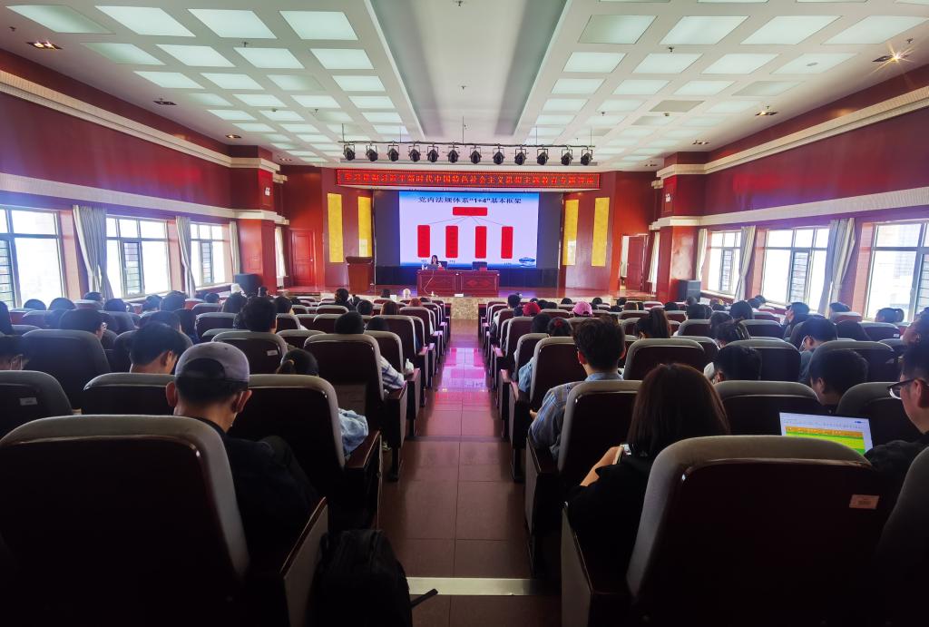 5月12日下午,由yl6809永利官网集团、轻工与纺织学院外国语学院党委金川校区电力大楼十楼报告厅联合举办学习贯彻习近平新时代中国特色社会主义思想主题教育专题讲座。邀请内蒙古党校(行政学院)于美丽副教授作题为“《中国共产党章程(修正案)新亮点新变化”的专题报告,三个学院领导班子、教师党员、学生党员200余人参加,yl6809永利官网集团党委书记马利强主持报告会。