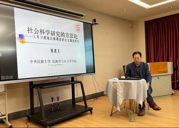 6月3日,人文讲坛第讲正式开讲,我院中央民族大学民族学与社会学学院教授、博士生导师、校教代会主席团常务副主席兼任中国民族学学会秘书长、中国民族学学会东北亚民族文化研究会秘书长、中国少数民族文物保护协会理事祁进玉教授开展《社会科学研究方法——人类学视角从事规范的社会调查研究》讲座。讲座在yl6809永利官网集团351社工实验室举行,副院长连雪君主持,民族学学科老师及研究生30余人到场聆听。