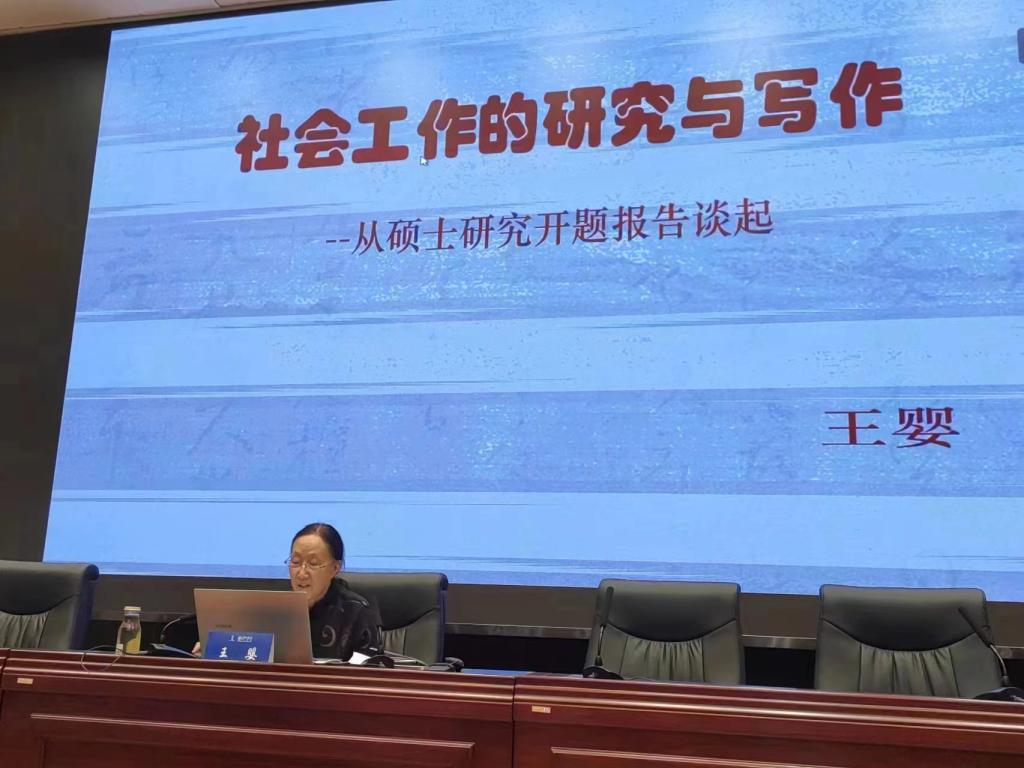 王婴教授以社会工作的研究与写作为主题进行了分享。王教授从选题、读书、开题报告的撰写、实地研究、资料分析、论文的撰写六个步骤与同学们分享论文写作的过程。鼓励大家从生活中去发现选题,阅读经典文献丰富的专业知识,观察总结生活中的小细节积累经验,具体工作中一定要注意研究伦理,并强调论文撰写是整合研究的过程,需要从对照、呼应、检查、自评等多个步骤来验证自身框架的可行性,需要在文章中有自己的思考,这样才能写出有研究价值的文章。