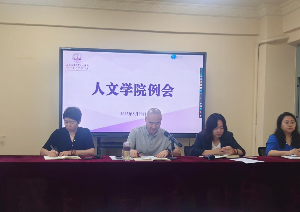 马利强首先传达 8 月 27 日内蒙古自治区教育系统秋季开学安全工作会议精神,要求全体教职工将安全工作理念融入新学期各项工作。围绕学生返校、迎新流程优化、开学初学生管理与思想政治教育等事宜作出具体部署,确保学生平安返校、新生顺利报到。号召全体教职工凝心聚力、协同协作,扎实推进学院高质量发展。