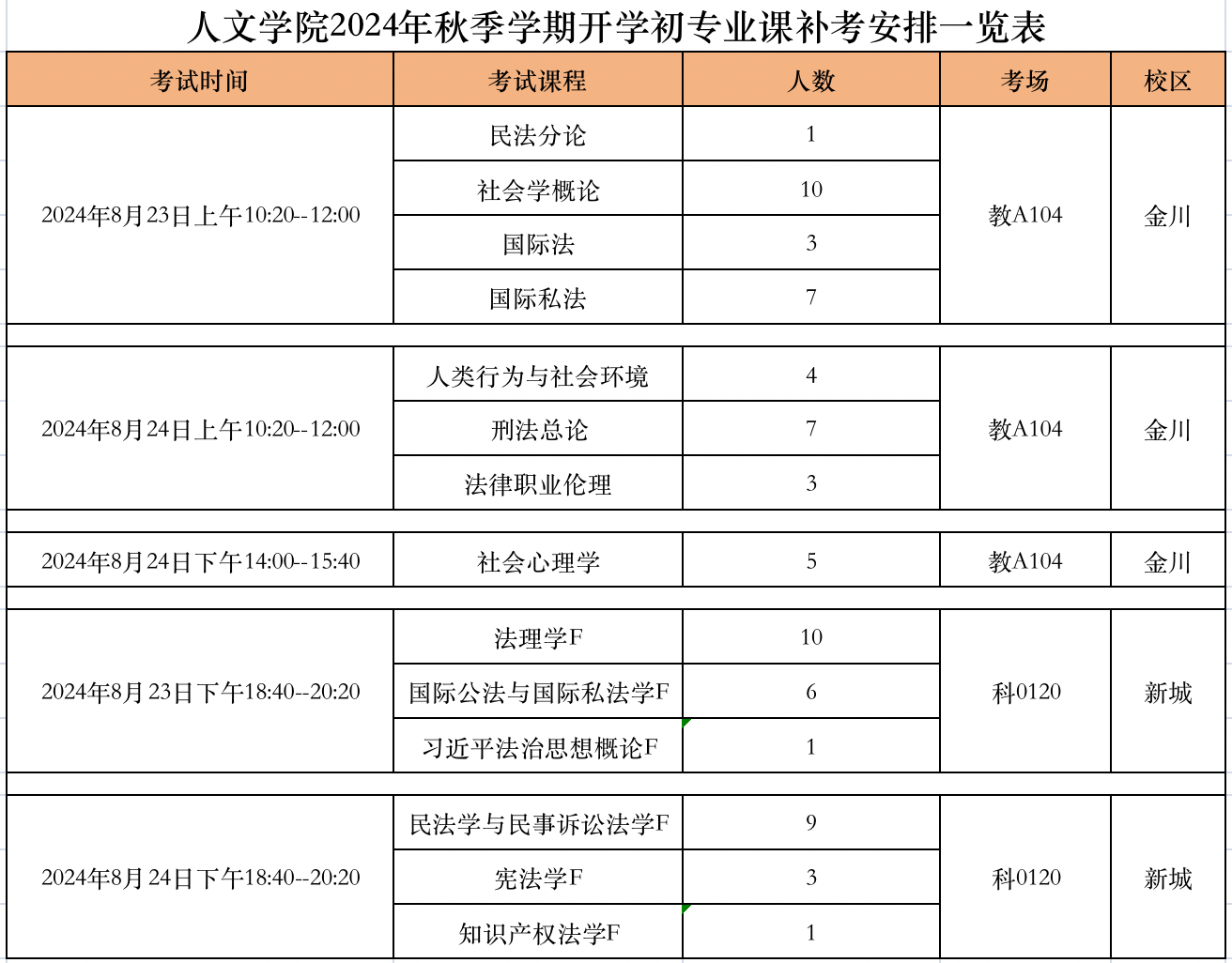 yl6809永利官网集团2024年秋季学期开学初专业课补考安排