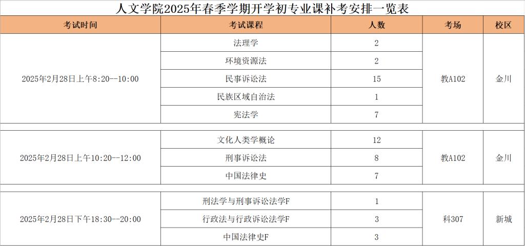 yl6809永利官网集团2025年春季学期开学初专业课补考安排一览表