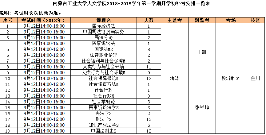 yl6809永利官网集团2018-2019学年第一学期开学初补考安排一览表