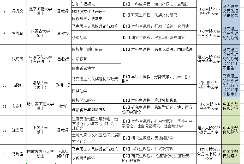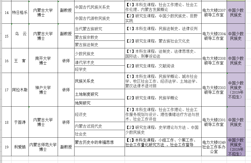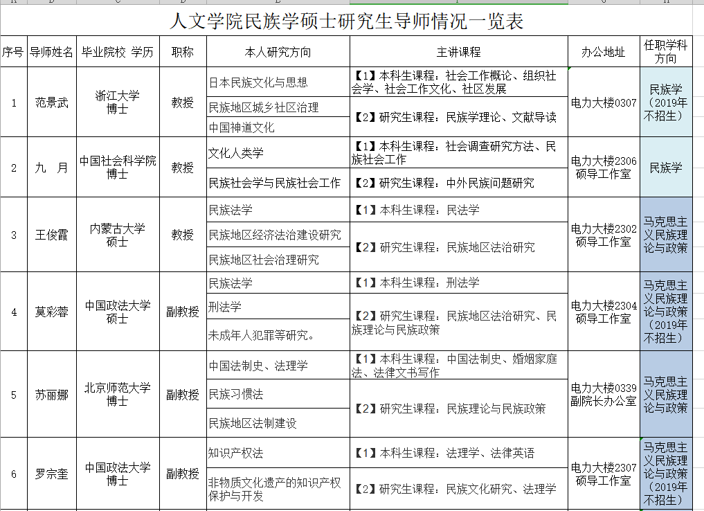 yl6809永利官网集团民族学硕士研究生导师情况一览表(2019年)