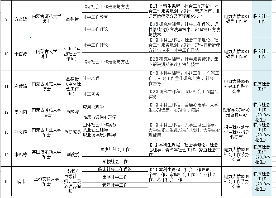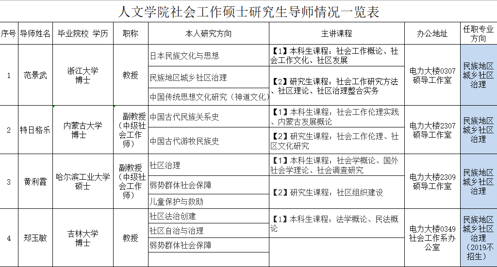 yl6809永利官网集团社会工作硕士研究生导师情况一览表(2019年)