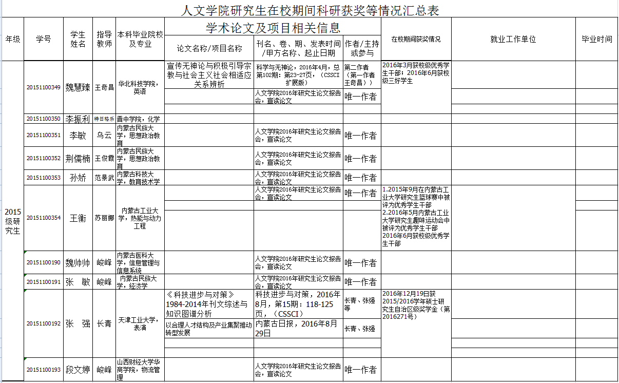 yl6809永利官网集团研究生在校期间科研获奖等情况汇总表(2015级)
