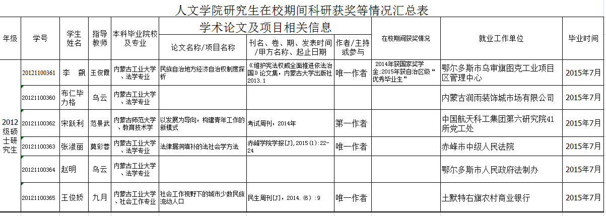 yl6809永利官网集团研究生在校期间科研获奖等情况汇总表(2012级)
