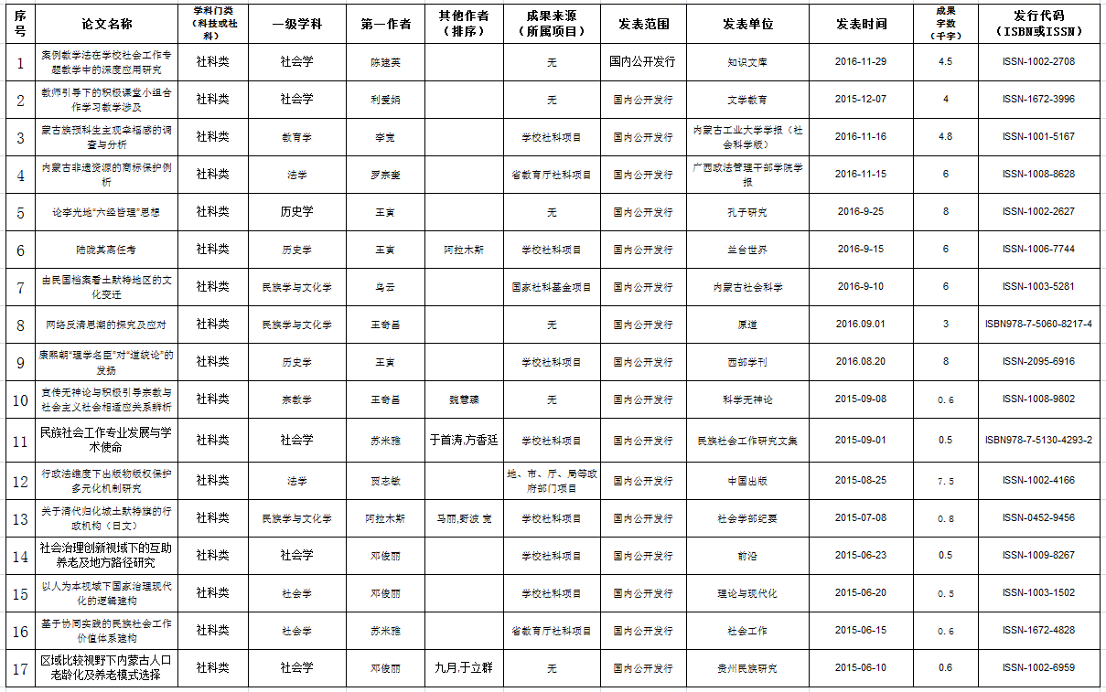 yl6809永利官网集团2016年度教师论文成果汇总表