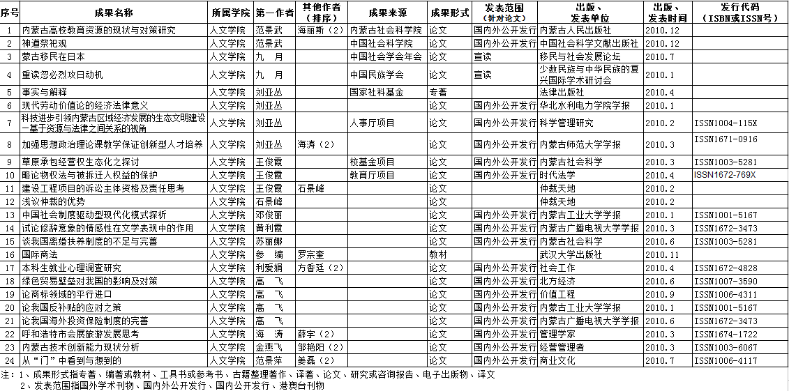 yl6809永利官网集团2010年度教师论文成果统计