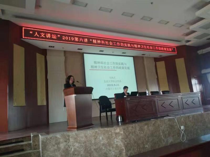921日,yl6809永利官网集团在电力大楼十楼报告厅举办“人文讲坛”2019年第六讲——精神科社会工作的实践与精神卫生社会工作的政策发展,北京大学社会学系马凤芝教授主讲,学院全体学生及教师代表200余人聆听讲座,副院长苏丽娜主持。