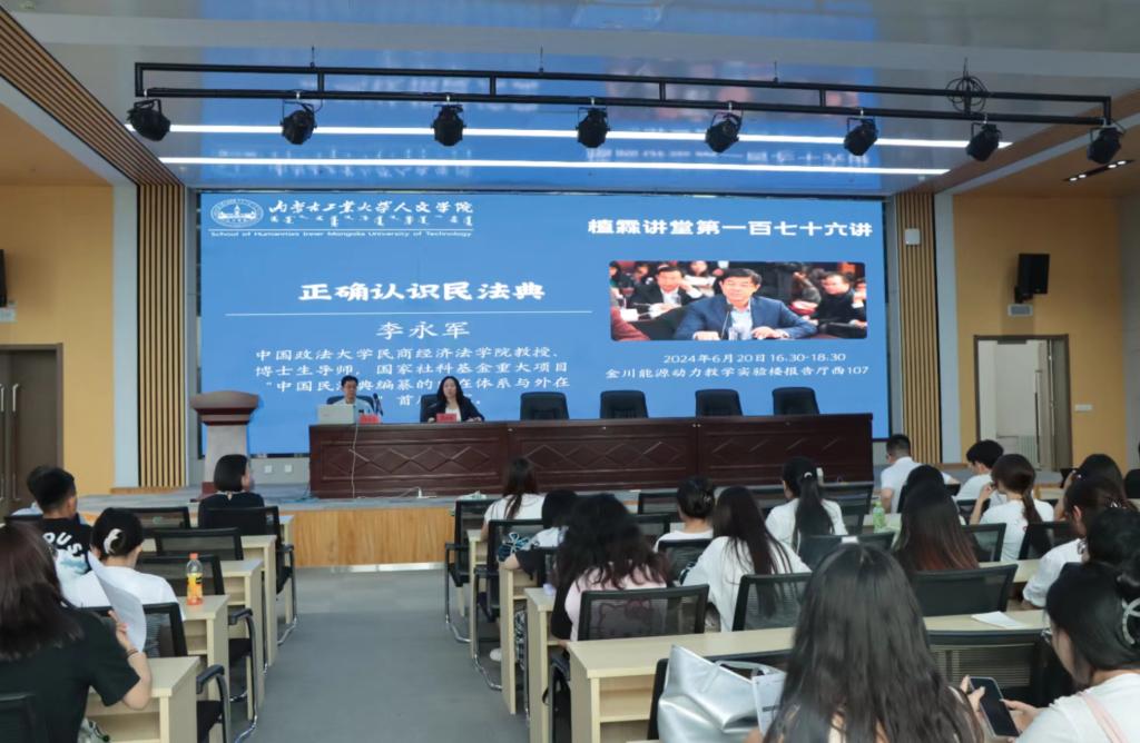 6月20日下午,我院举办植霖讲堂第一百七十六讲,邀请中国政法大学民商经济法学院李永军教授做学术讲座。同时邀请中国政法大学民商经济法学院席志国教授做人文讲坛第四讲。yl6809永利官网集团相关专业教师及学生共计200余人参加,苏丽娜院长以及王俊霞教授分别担任主持人