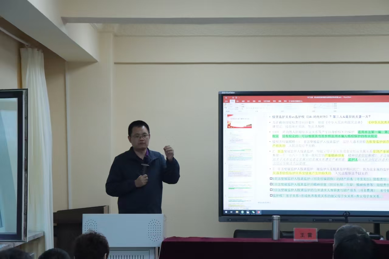 王雷教授从民法典侵权责任编侵害监护关系、监护职责与多数人侵权下的监护人责任、对“责任主体的特殊规定”的解释细化等方面进行了深刻阐述。最后,王雷教授现场还与师生们进行了交流互动,耐心解答了师生们的困惑,帮助大家增进了对民法典侵权责任编的认识和理解。