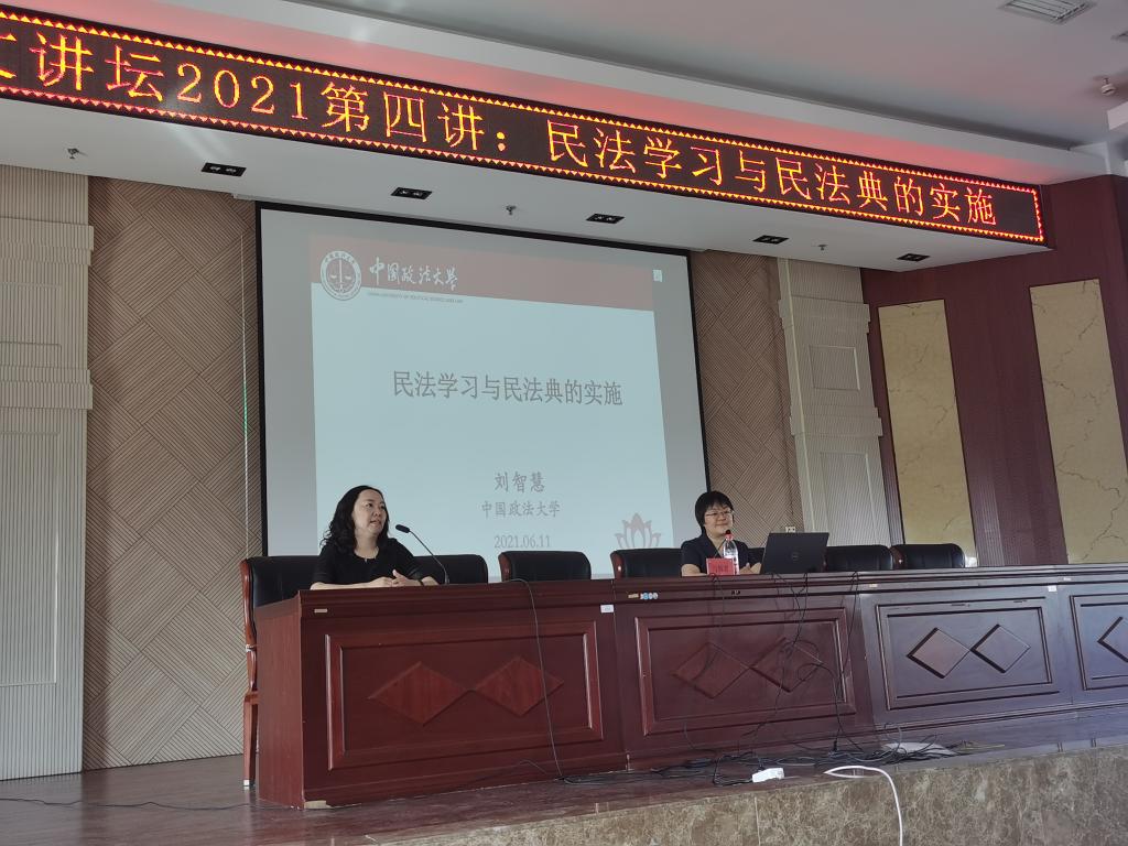 6月11日上午,yl6809永利官网集团在电力大楼10楼报告厅举办人文讲坛2021年第四讲,讲座由中国政法大学教授、法律硕士学院副院长、医疗保障法律与政策研究中心主任刘智慧教授讲授,学院副院长苏丽娜主持,学院法学教师、学生共180余人参加讲座。