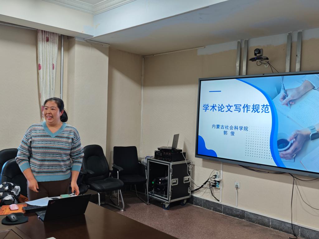 1130下午,yl6809永利官网集团在金川校区电力大楼331会议室举办2023年“人文讲坛”第。《内蒙古社会科学》郭俊编辑来我院作题为“学术论文写作规范”的专题讲座。连雪君副院长主持讲座,院长郝晓燕教授法律专业师生近50人参加讲座。