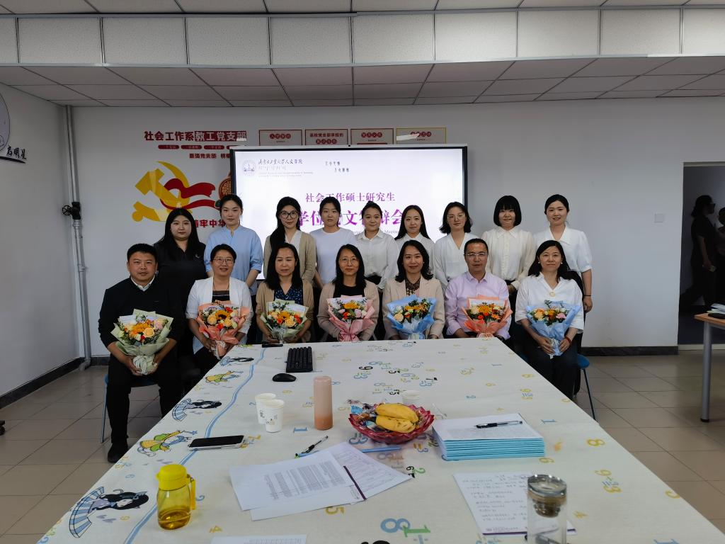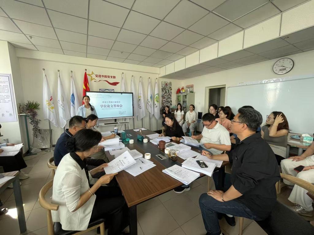 6月5日,社会工作专业分3组进行答辩,内蒙古师范大学魏霞教授、内蒙古医科大学乔婷婷教授、内蒙古农业大学张银花教授应邀出席,并作为答辩主席主持了此次学位论文答辩,答辩委员由内蒙古大学张笑会副教授、包头市九原区委社会工作部郭艳芳高级社工师、内蒙古师范大学青年政治学院李建副教授和我校MSW教育中心硕士导师担任,23名毕业生参加答辩。