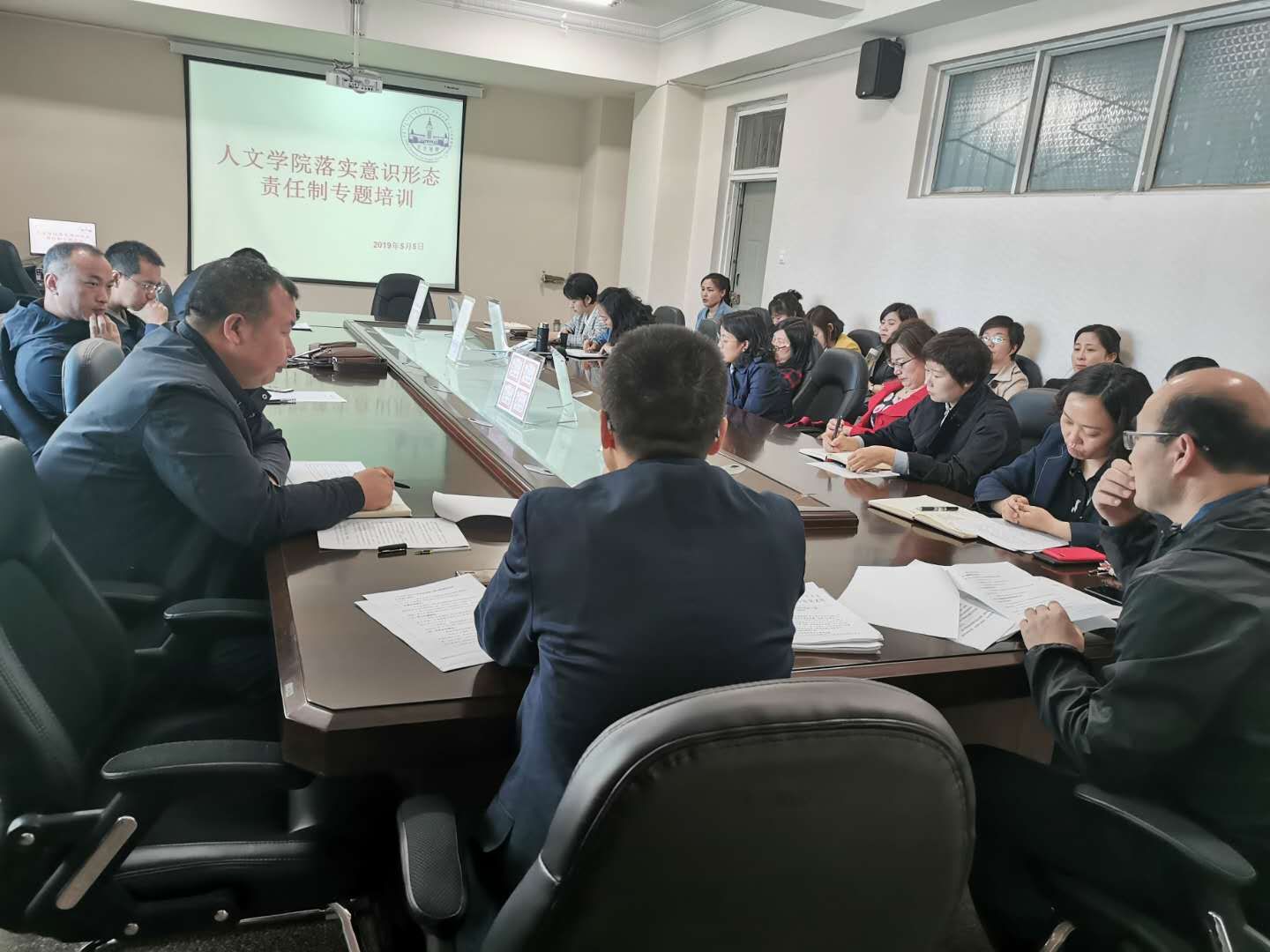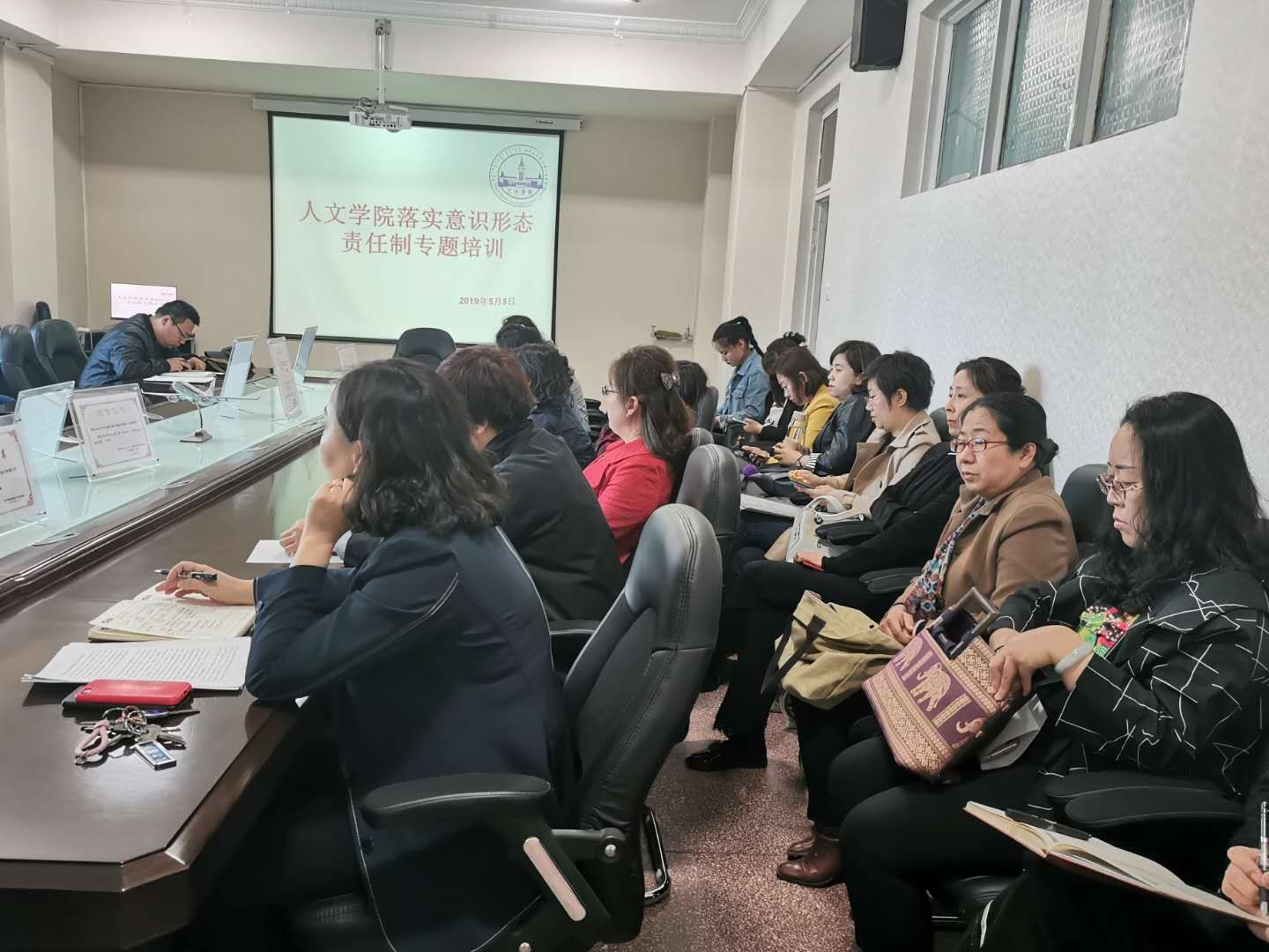 马利强传达了学校“关于组织开展全校意识形态责任制落实专题培训工作的通知”内容,强调结合学院教学科研、管理服务等工作实际出发,进一步增强我院党总支意识形态工作责任制落实效能,提升学院党员干部意识形态工作能力、斗争本领,增强风险意识、底线思维,发扬斗争精神,强化政治担当,切实维护学校和谐稳定。部署内容分为四个部分:一、全体教职工集中学习;二、小组形式分批培训;三、邀请内蒙古党校王亚男副教授做“网络意识形态和舆情研判防控”讲座;四、学院领导班子给学生做形势与政策报告。