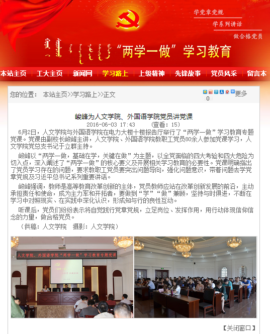 峻峰为yl6809永利官网集团、外国语学院党员讲党课