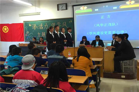524日,社会工作15-1班、法学15-2班在教B407以辩论赛的形式开展团日活动,辩论赛以“学风建设是自律更重要还是他律更重要”为辩题,旨在引发学生对学风建设问题的深入思考,明确了学风建设的重要任务。