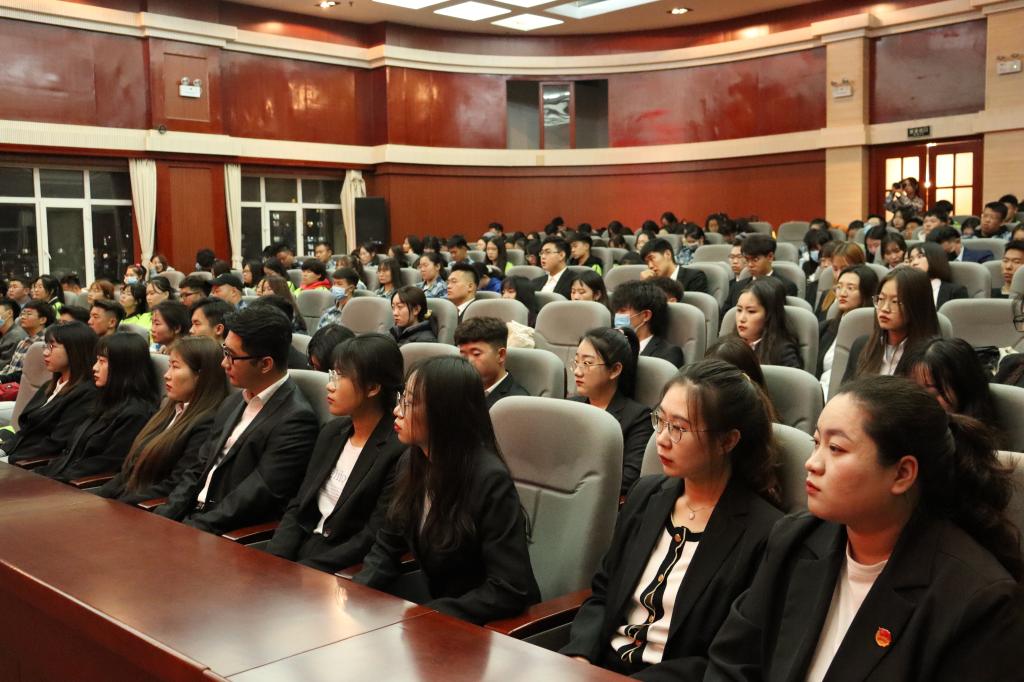 10月26日晚,yl6809永利官网集团在电力大楼十楼报告厅举办2020年“晨曦计划”学生干部培训暨换届大会,yl6809永利官网集团副书记、副院长白南定、团学办公室主任齐永富、副主任陈槟颖、团总支书记孔德豪、团学办公室老师宋怡凡、团学办公室助管张冰青、杨成武及全体学生干部和志愿者参加。张冰青主持会议。
