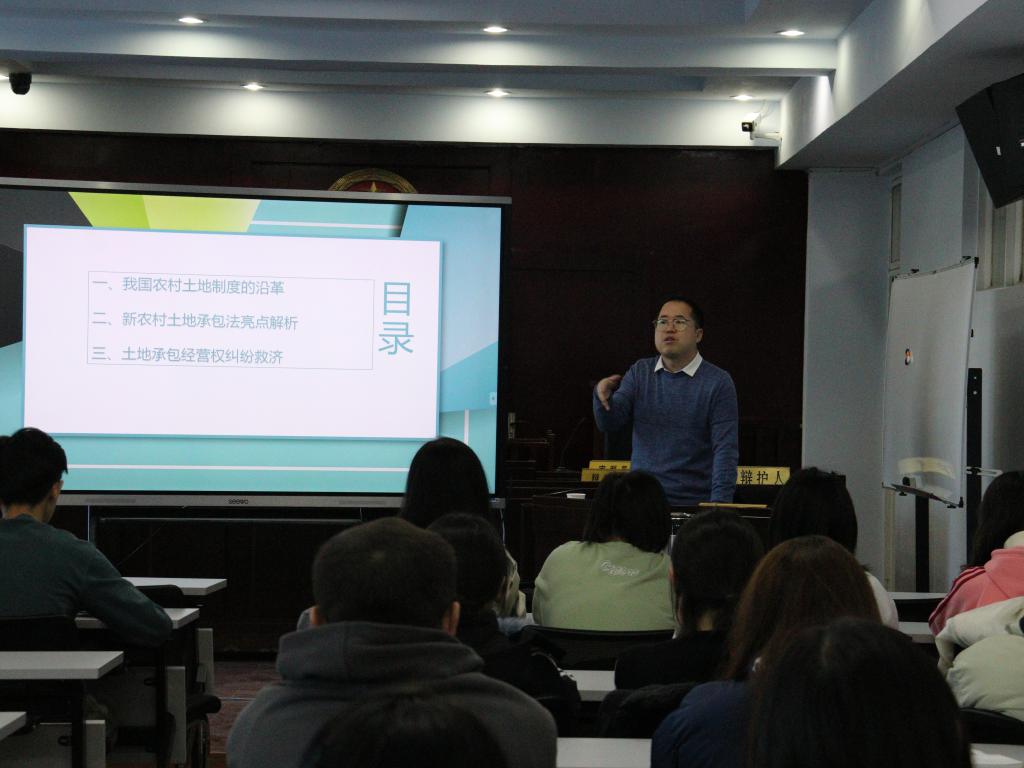 12月2日-3日,yl6809永利官网集团先后在模拟法庭举办“宪法知识竞赛”和“12.4国家宪法日”系列专题讲座。“宪法知识竞赛”共有15组60名学生报名参赛,经过初赛选拔共4组选手进入决赛。激烈的比赛过程使参赛选手和现场观众学习了更多的宪法知识,也充分调动了广大学生学习宪法的积极性。系列专题讲座中,yl6809永利官网集团苏丽娜副教授以“解读习近平法治思想”为主题,从习近平法治思想的形成背景、重大意义和核心要义3个方面进行了深入讲解。此外,学院还邀请了内蒙古乐水律师事务所赵明副主任,以“民法典用益物权相关法律问题解析”为题,对土地管理相关法律制度进行了深入解析。