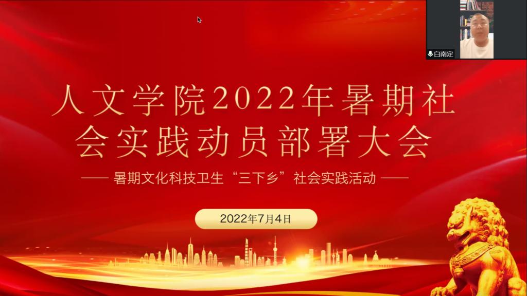 7月4日,我院在线上召开了2022年暑期“三下乡”社会实践动员部署大会,由我院党委书记马利强,副书记、副院长白南定出席,团学办公室副主任陈槟颖主持,学院全体学生干部参加。
