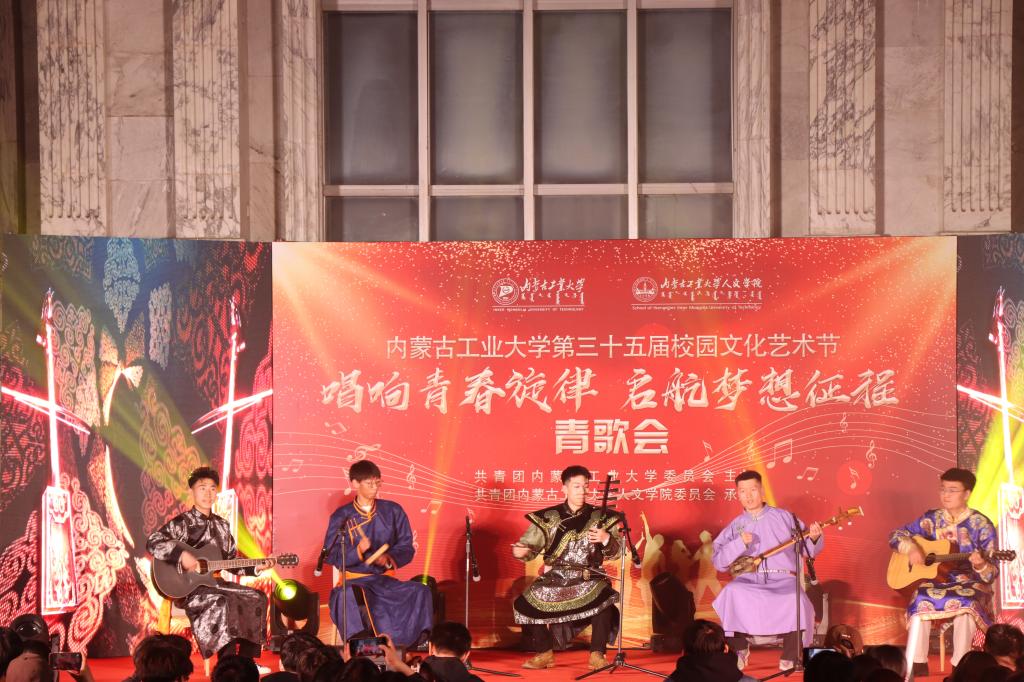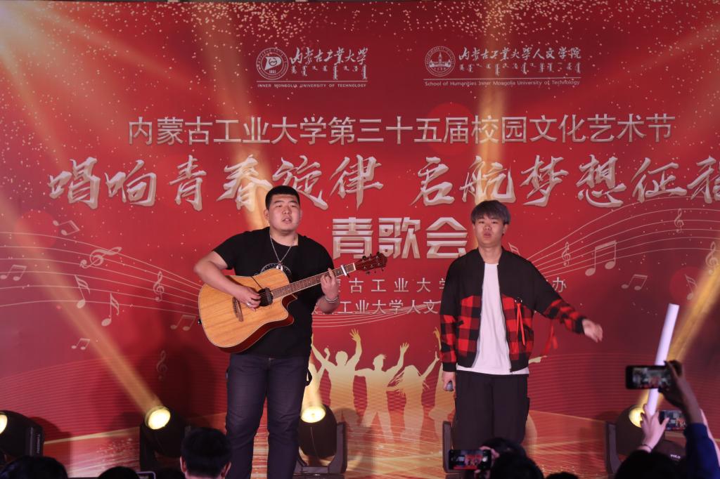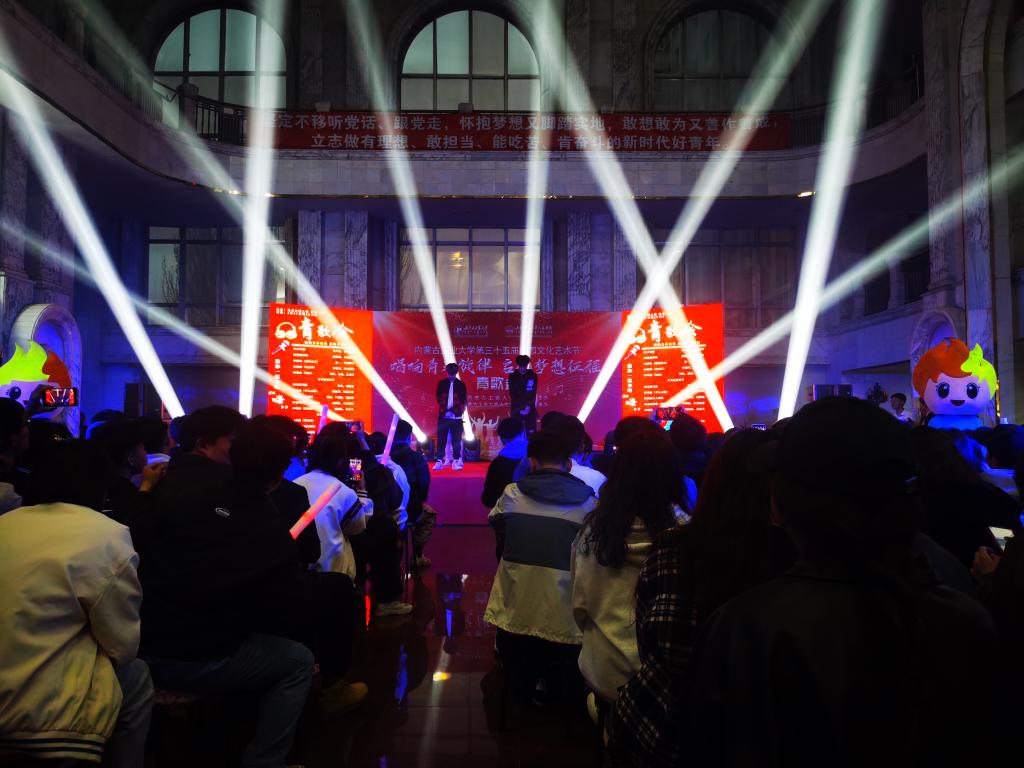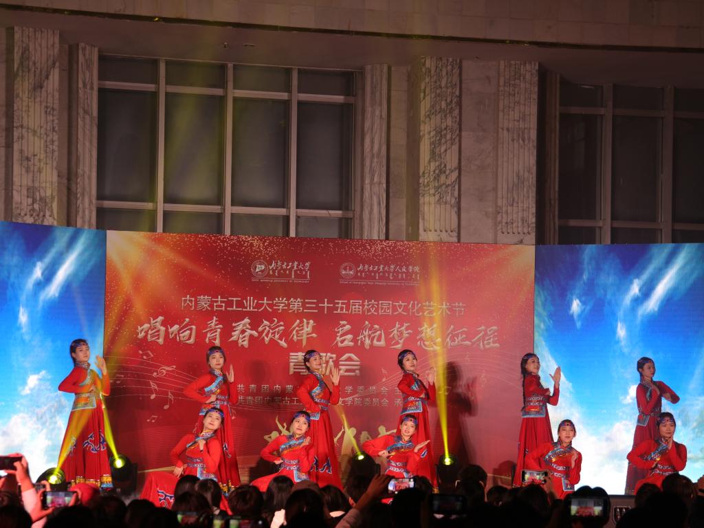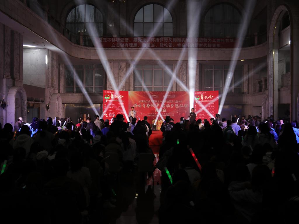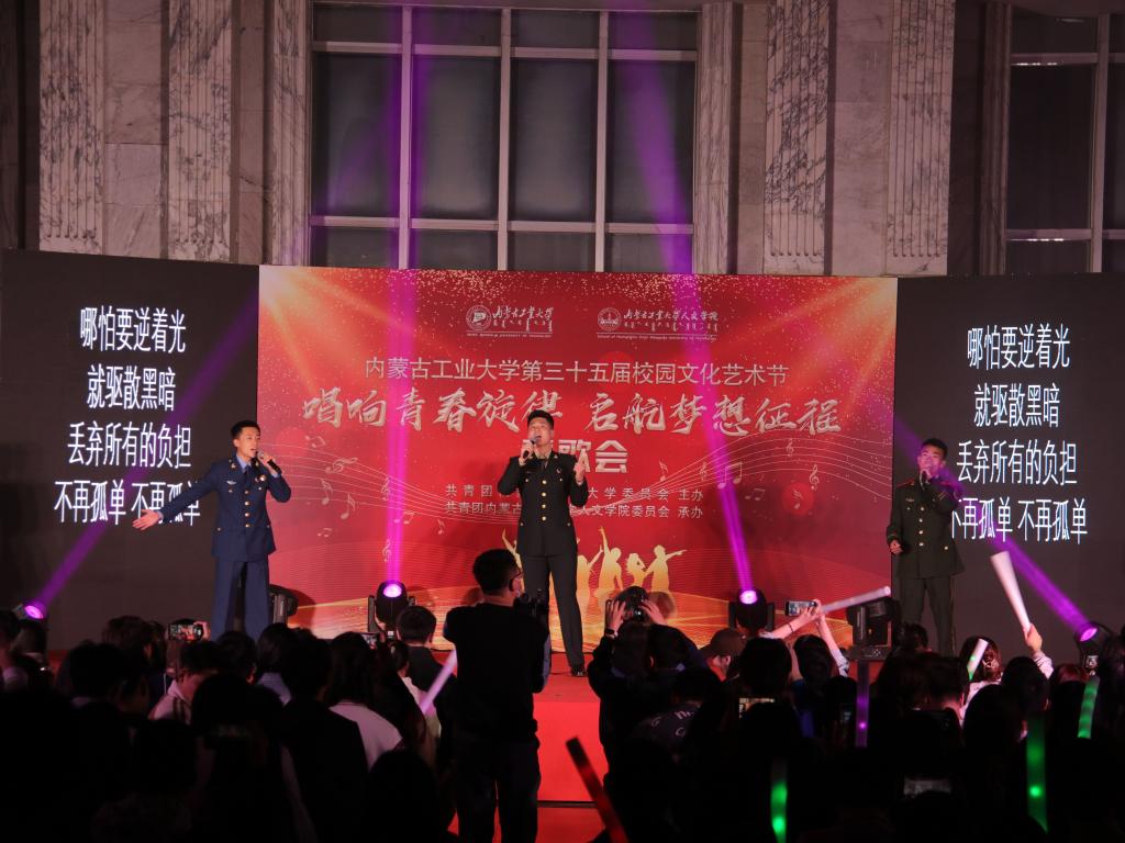 歌会在青春激荡的现代舞中拉开帷幕;《如愿》、《想见你》、《我记得》、《平凡之路》等一首首令人动情的歌曲感动着现场每一位观众。《我的未来式》、《稻香》、《青花瓷》等歌曲串烧、说唱《飘向北方》等耳熟能详的歌曲唱出了青春活力。退伍士兵联唱《你的答案》《我的好兄弟》带动全场观众唱出了强烈的家国情怀,唱出保家卫国的青春激昂,将活动气氛推向高潮。古风舞《再回眸》、民族舞《草原情韵》、诗歌朗诵《致先辈》、乐器弹奏等,展现了中华民族一家亲,文化交流、交融繁荣盎然的景象。活动中,还穿插了“学习二十大”知识问答活动,在欢乐的气氛中,激发了青年学生的学习热情。同学们一次次的欢呼、一声声的呐喊,伴随着色彩斑斓的舞美灯光,打破了校园的宁静。动感的歌舞,激发了校园的活力,也唱出了校园生活的美好,为同学们带来了一场非常“解渴”的视觉盛宴。