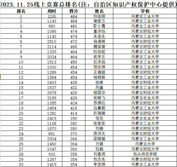 11月24日,我院刘佳丽、谢家兰等14名同学在自治区知识产权保护中心举办的保护知识产权服务志愿者线上知识竞赛中200余名来自不同院校的志愿者同台竞技最终凭借出色的表现名列前茅。
