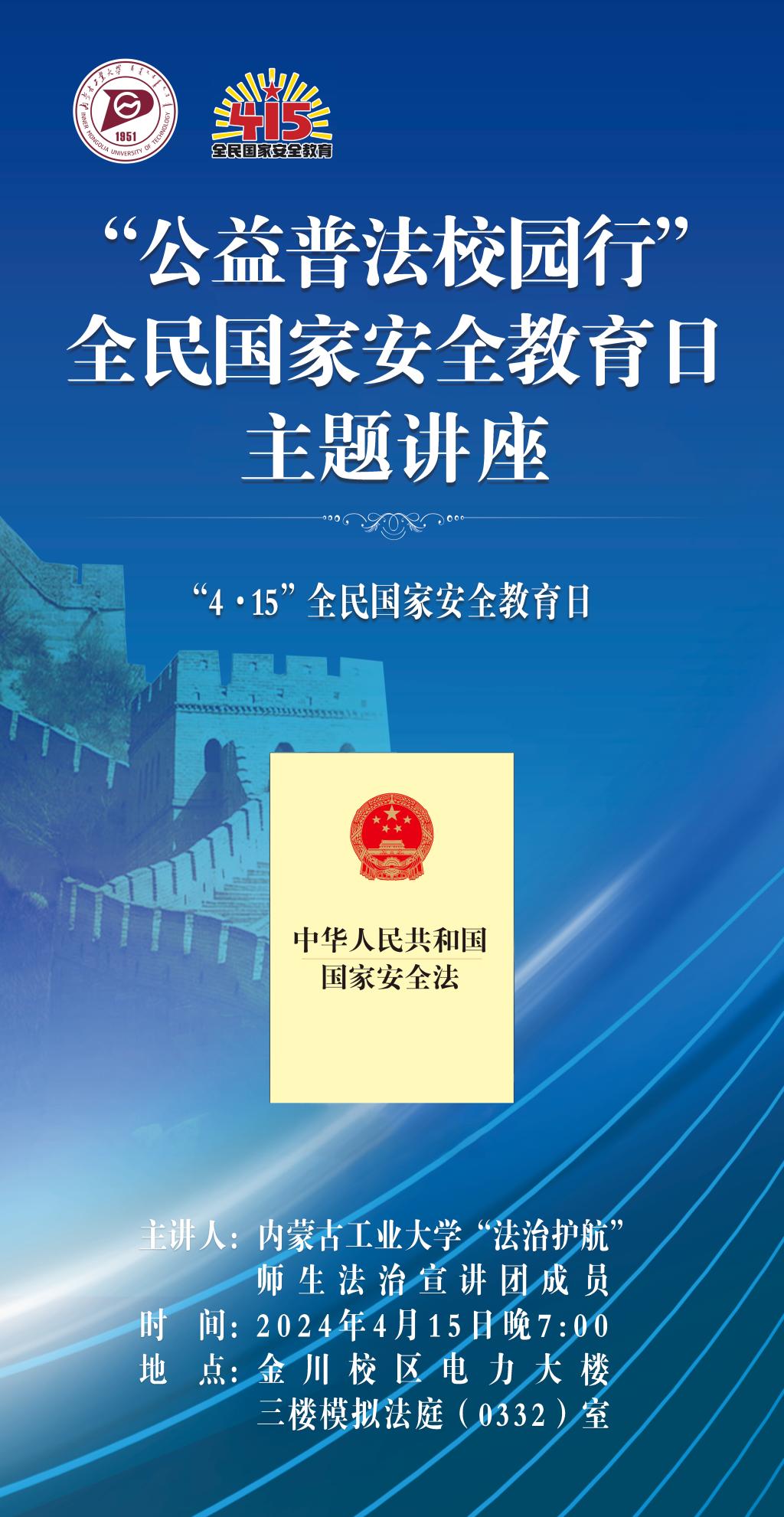 预告丨“公益普法校园行”——全民国家安全教育日主题讲座开讲啦!