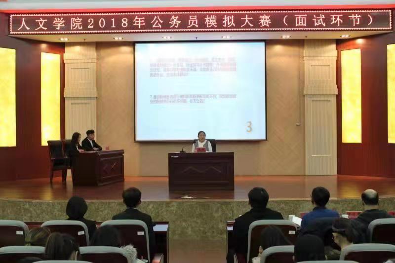 11月21日晚,yl6809永利官网集团2018年公务员模拟大赛决赛在金川电力大楼十楼报告厅举行。党总支书记马利强、副院长毛长明、团学办副主任王凯、辅导员助理程昊和樊冬乐担任面试官。