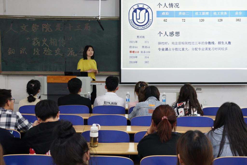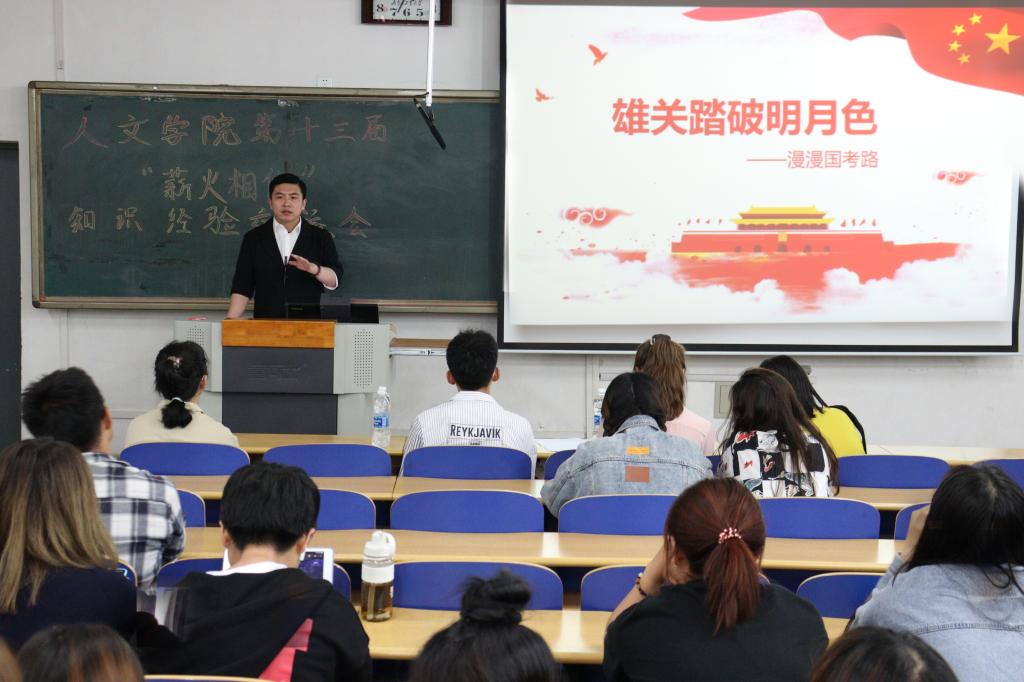 为进一步提高我院学生学习和备考热情,了解考研、公考、法考信息,提升求职能力,我院于5月11日晚在A辅101举行第十三届薪火相传经验交流会,大一至大三年级60余人参加此次活动。