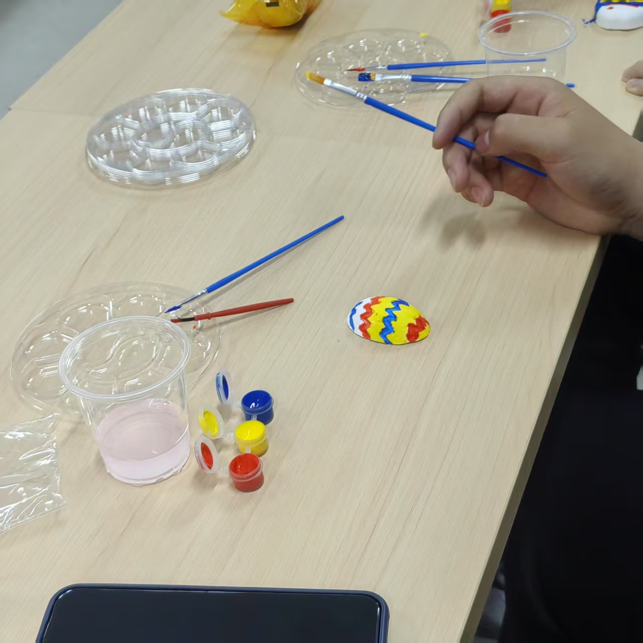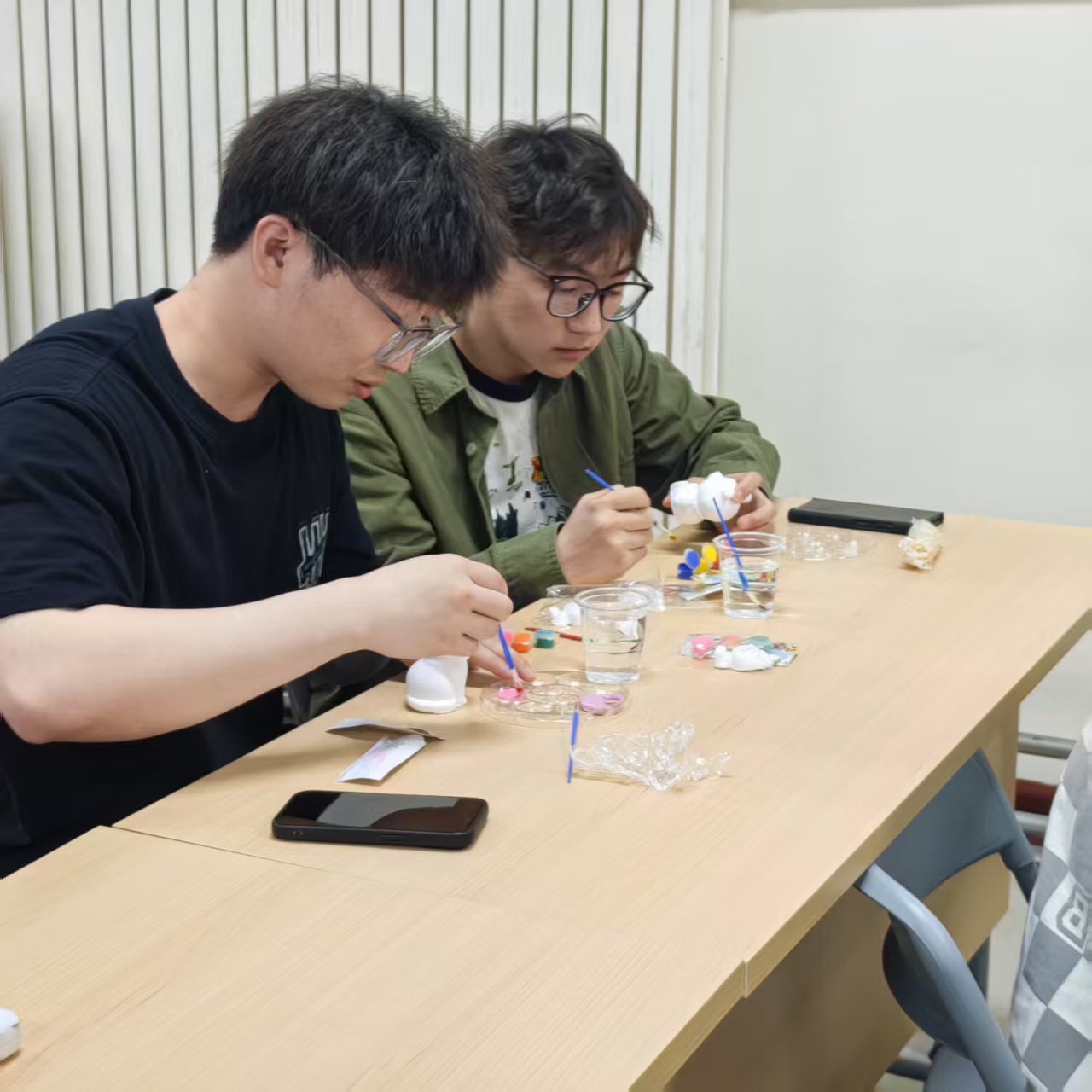 本次活动以“绘画是内心世界的投射”为理念,鼓励学生通过色彩表达情感,在自由创作中放松身心。同学们或专注独立绘制,或与同伴交流灵感,用画笔为素白的石膏注入个性与温度。有的为小熊添上星空披风,寓意“心怀浪漫宇宙”;有的将小兔涂成暖黄色,写下“成为自己的太阳”;还有同学尝试大胆撞色,展现对多元自我的探索。心理部成员全程引导互动,通过轻松话题帮助学生在创作中觉察情绪、梳理思绪。活动尾声,参与者们带着亲手绘制的作品和愉悦的心情离场。