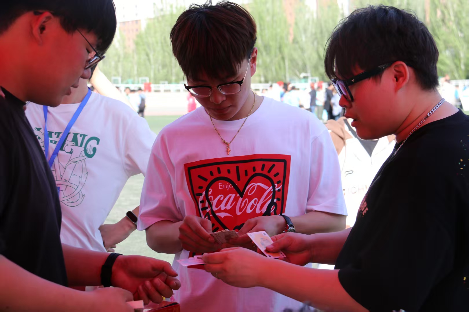 活动设置盲摸猜物扑克牌24点两大特色板块。在盲摸挑战区,参与者通过触摸盲袋内动物摆件的独特造型进行辨识,现场此起彼伏的兔耳朵”“海豚鳍等惊喜发现,让成年学子重拾童真趣味。24点速算区则掀起头脑风暴,参与者运用四则运算组合扑克牌数字冲击24点目标,既有个人凝神心算的专注场景,也不乏团队协作的思维碰撞。活动现场特别设置治愈系奖品兑换环节,成功通关者可自选解压"捏捏乐"、绿植盆栽、文艺手串等暖心礼物。